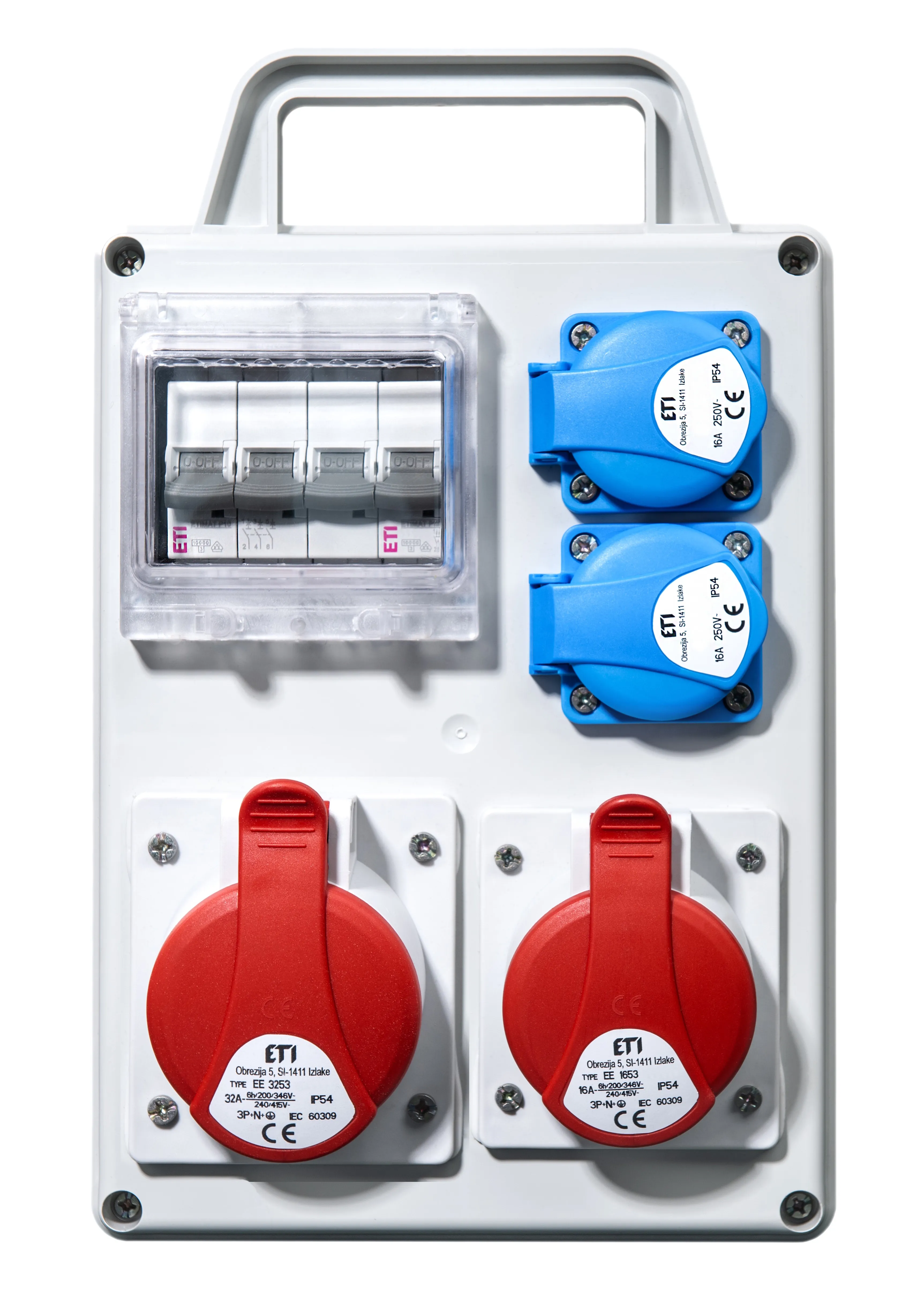 - 1x16A(5P),1x32A(5P), 2xSCHUKO